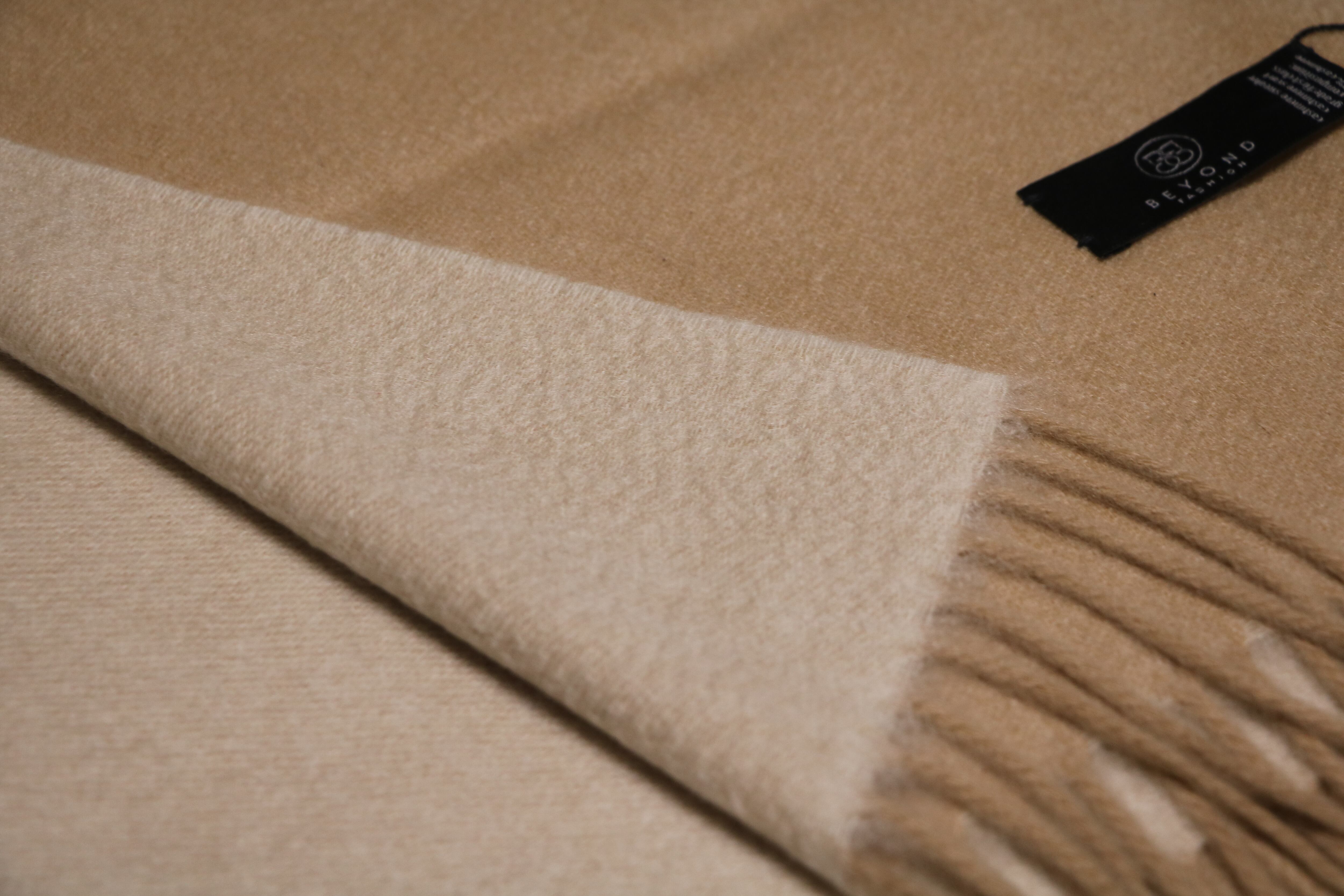 厚手カシミヤマフラー(表:ベージュ 裏:白)