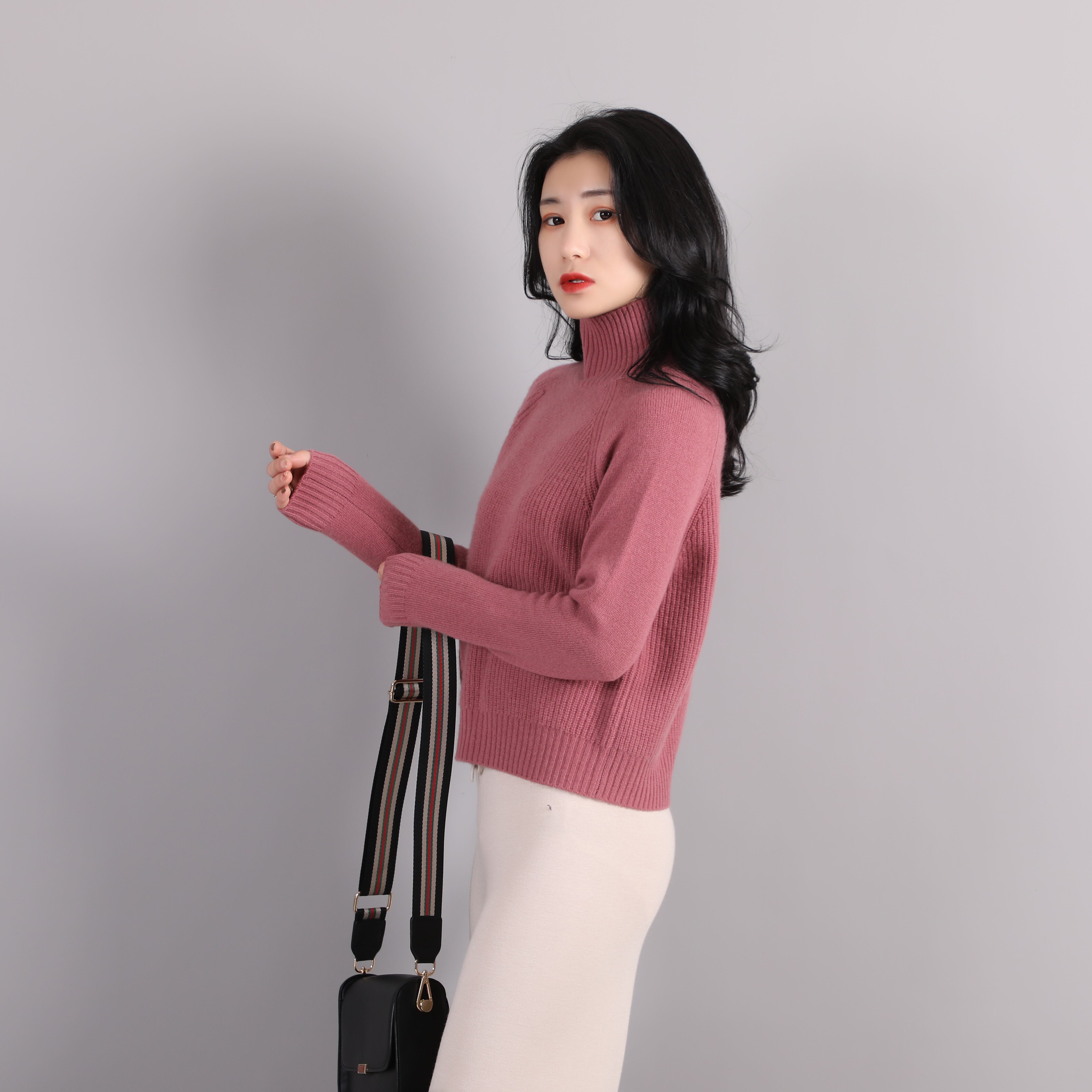 カシミヤ100%のハイネック レディスセーター